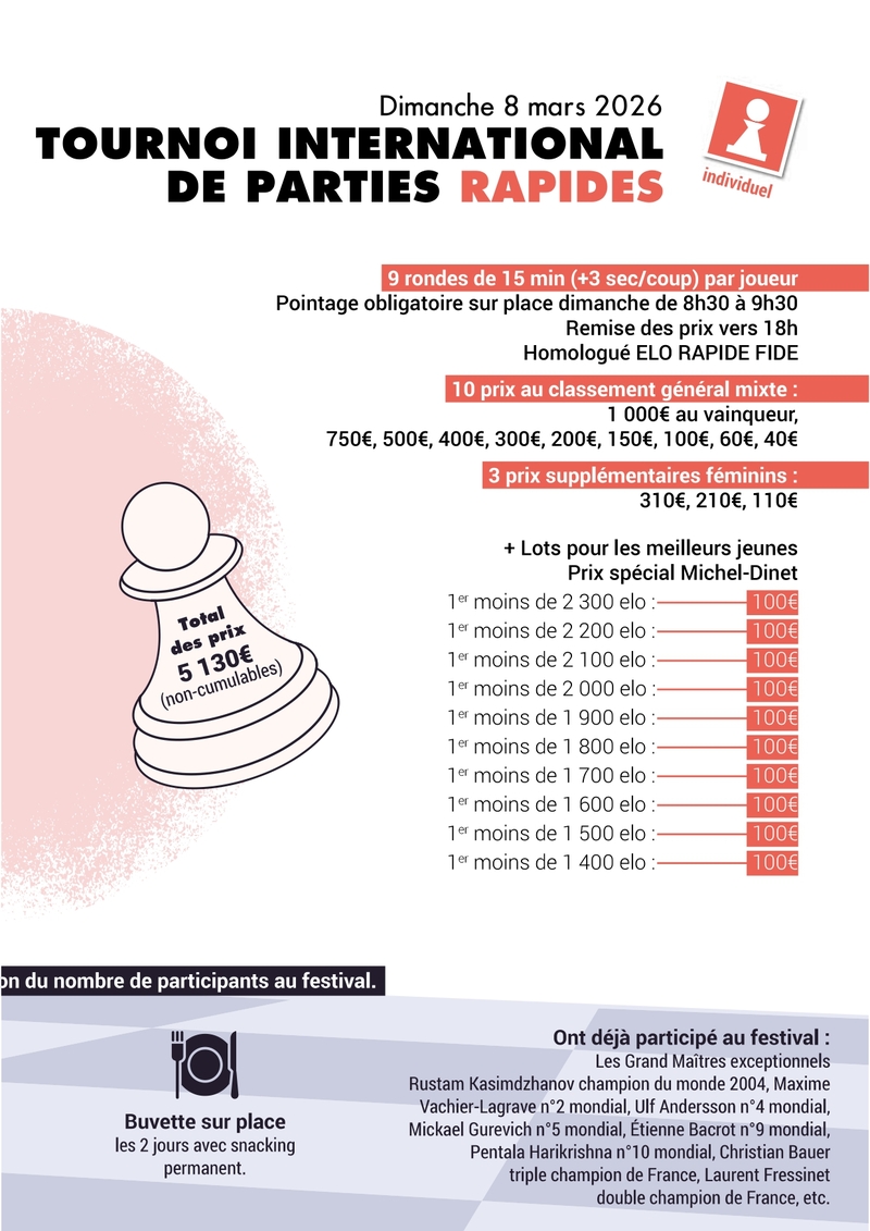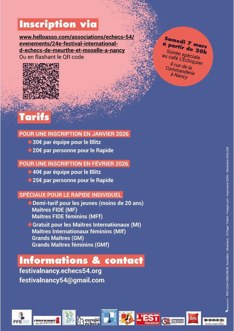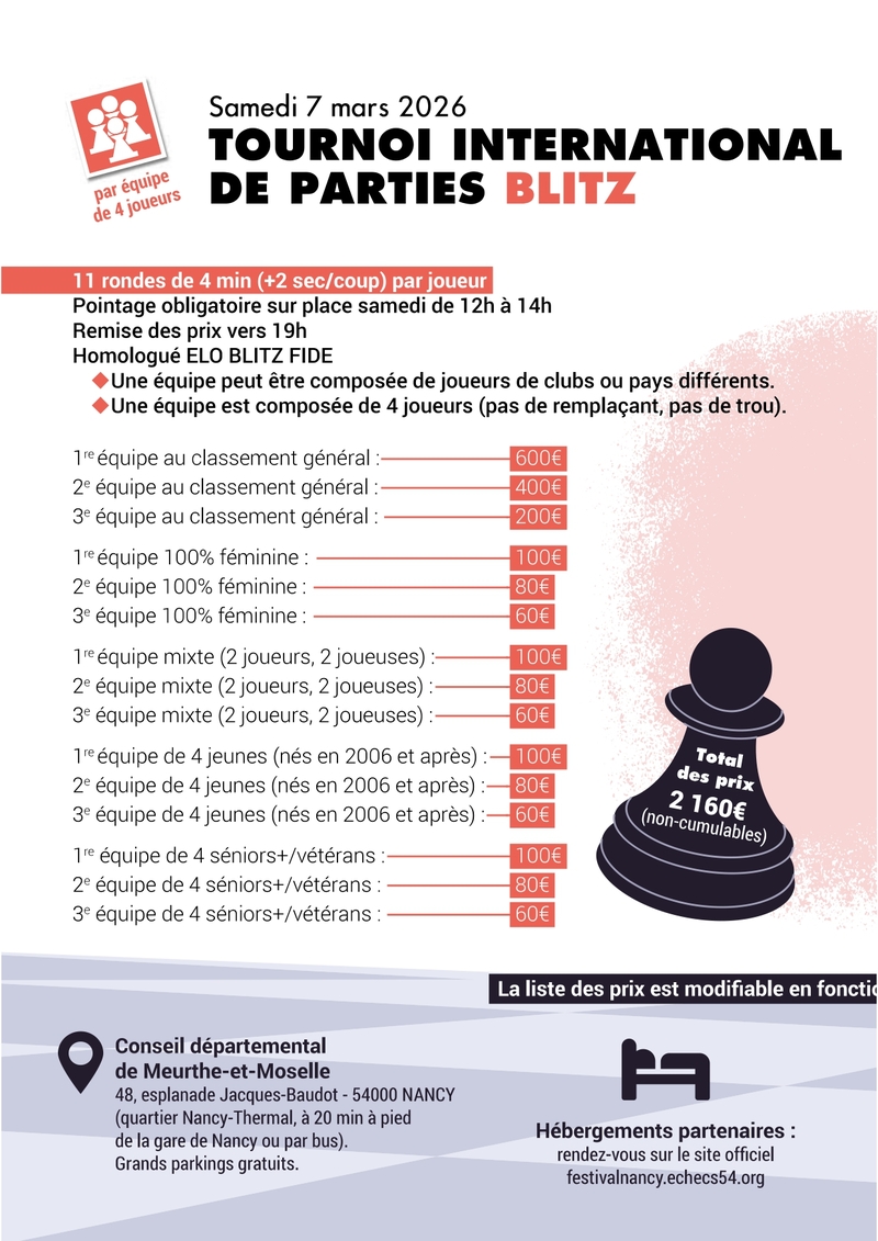 24e Festival International d'Echecs du conseil départemental de Meurthe-et-Moselle à Nancy : 7-8 MARS 2026